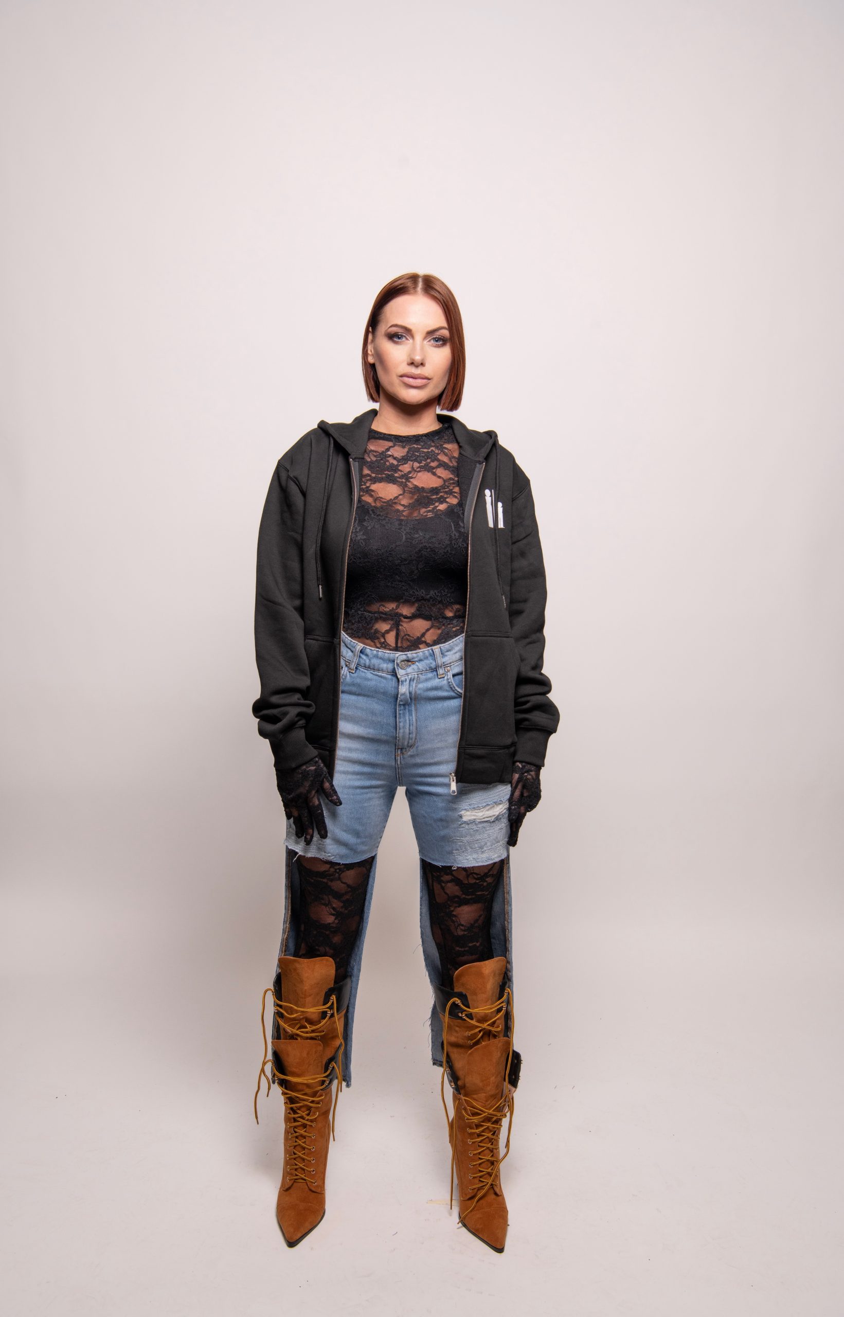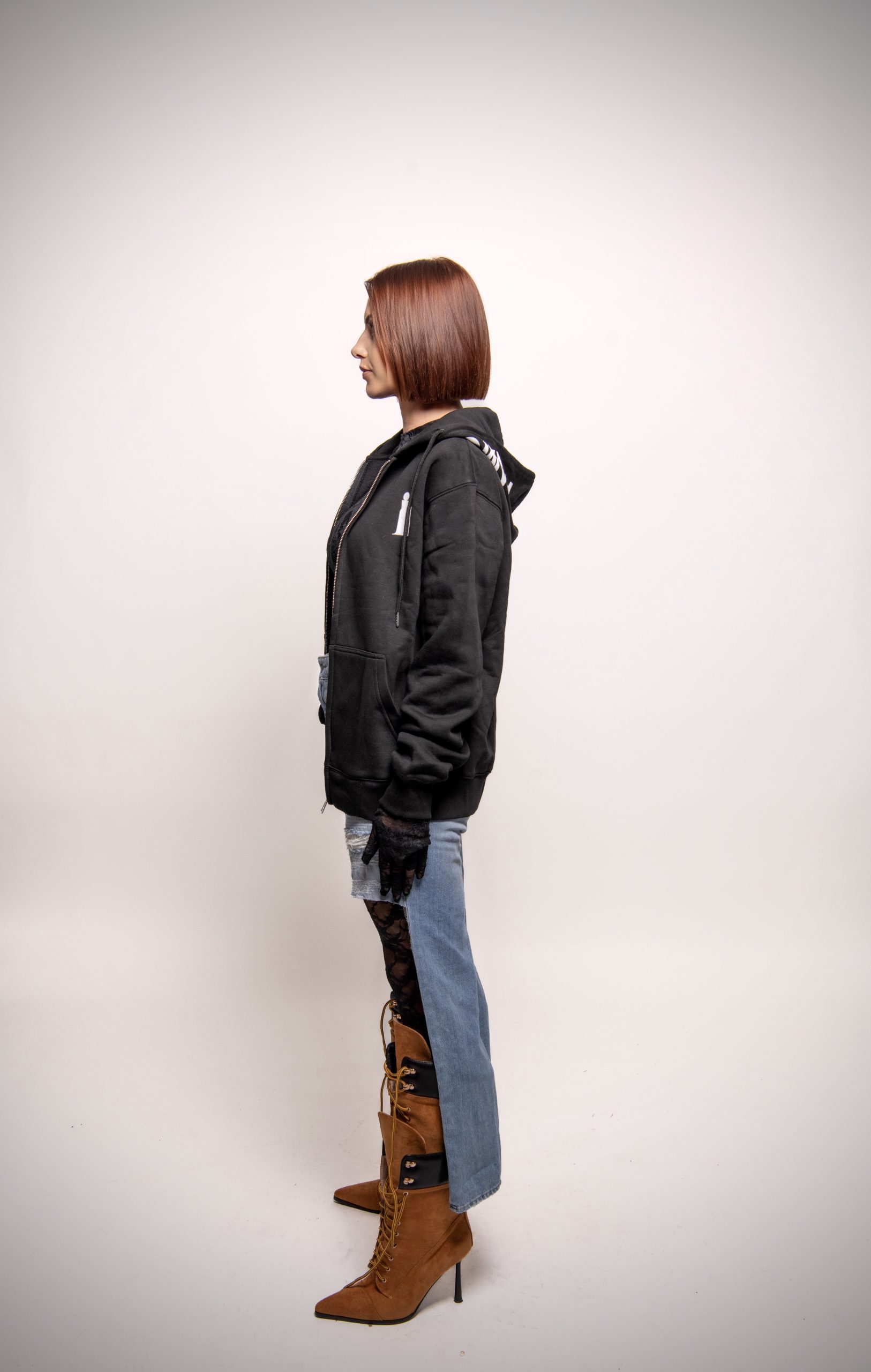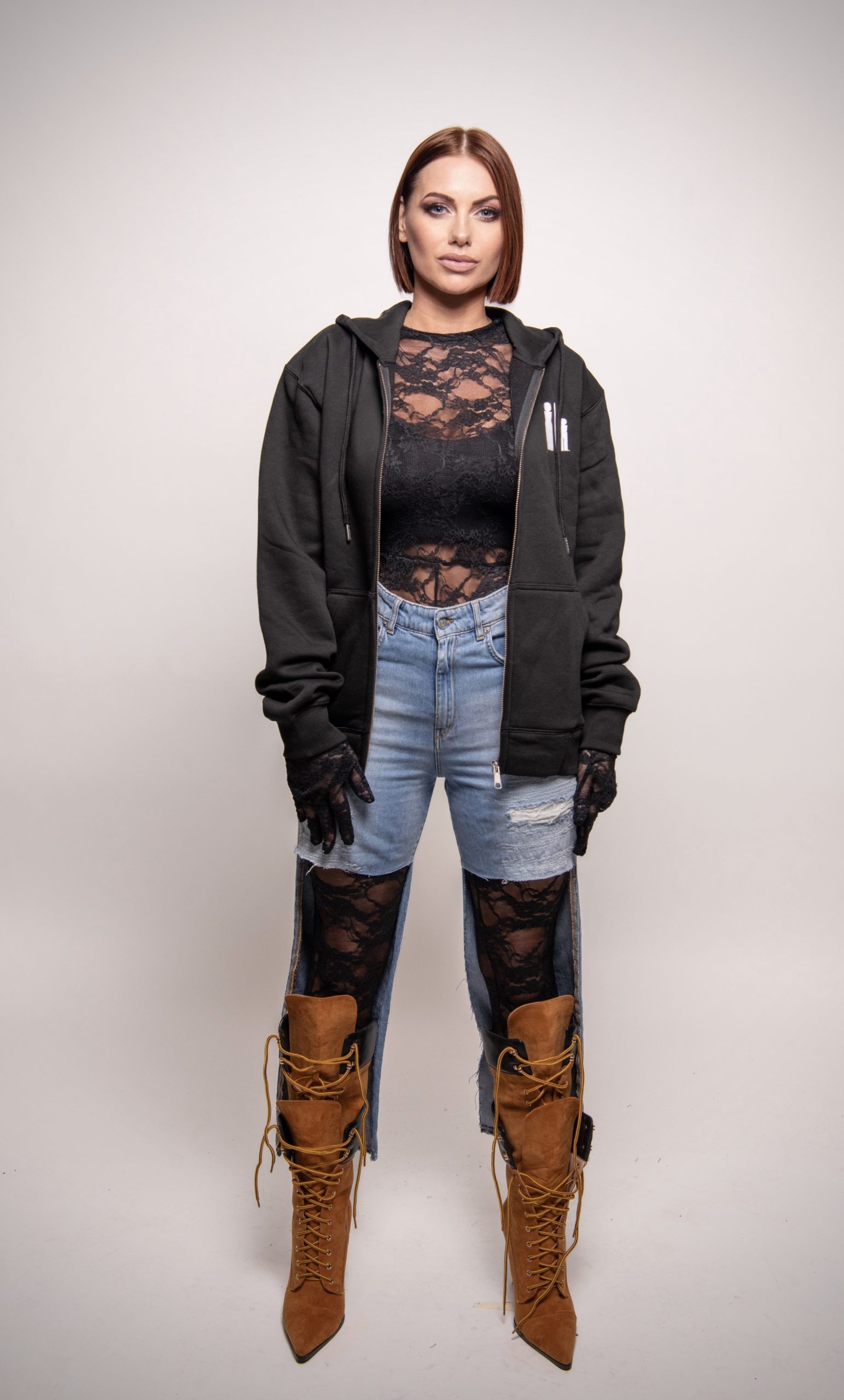 ADAMONA PARIS – AVENUE MONTAIGNE – Hoodie mixte noir zippé