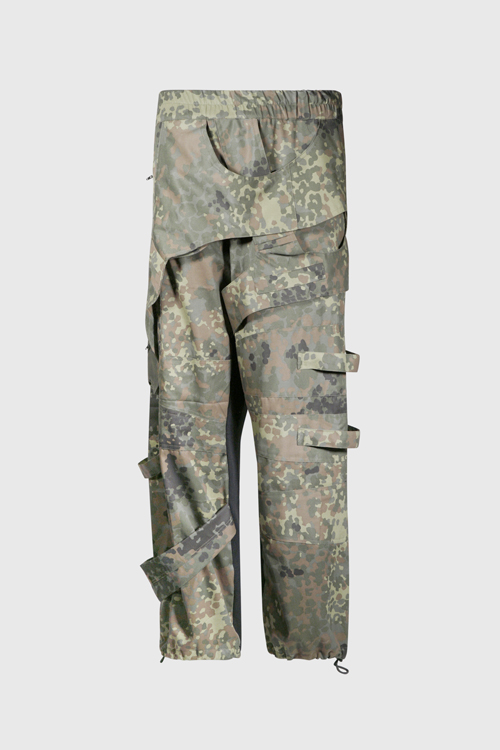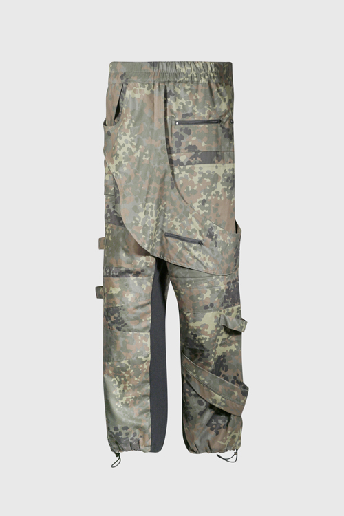 Tissu gabardine camouflage avec fermeture éclair Modèle déstructuré Doublure coton noir Pantalon gabardine camouflage avec fermeture éclair Modèle déstructuré Doublure coton noir